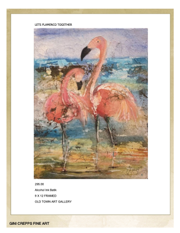 LETS FLAMENCO TOGETHER 295.00 Alcohol Ink Batik 9 X 12 FRAMED OLD TOWN ART GALLERY GINI CREPPS FINE ART