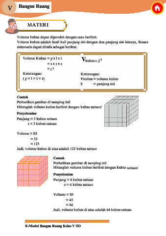 Jadi, volume kubus di atas adalah 125 kubus satuan