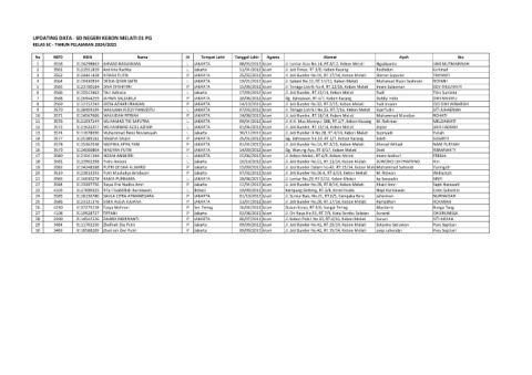 25 3586 3123121376 SISKA AULIA JULIANA P JAKARTA 13/07/2012 Islam Jl. Jati Bunder No.28, RT.17/14, Kebon Melati Ramadhon ROKANAH