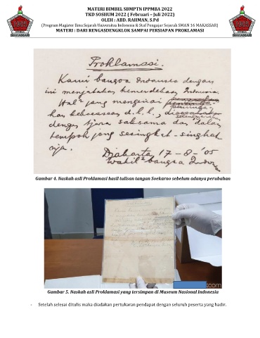 Gambar 4. Naskah asli Proklamasi hasil tulisan tangan Soekarno sebelum adanya perubahan