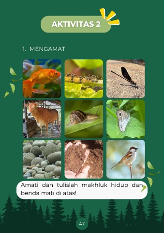 1. MENGAMATI Amati dan tulislah makhluk hidup dan benda mati di atas! 47