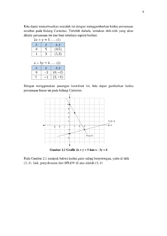 Gambar 2.1 Grafik 2x + y = 5 dan x - 3y = 6