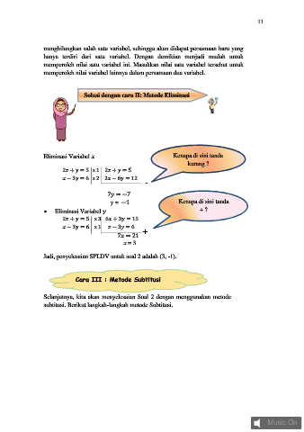 menghilangkan salah satu variabel, sehingga akan didapat persamaan baru yang