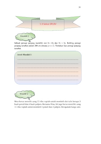 buah pensil dan 6 buah pulpen. Bersama Nina, Sri juga harus memiliki uang