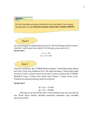 menggunakan konsep Sistem Persamaan Linear Dua Variabel (SPLDV).