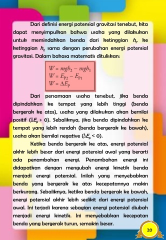 Dari definisi energi potensial gravitasi tersebut, kita