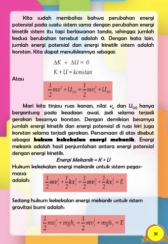 Sedang hukum kekekalan energi mekanik untuk sistem