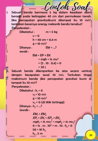 1. Sebuah benda bermassa 5 kg dalam keadaan diam