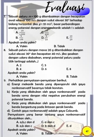 a) Energi mekanik benda yang dipengaruhi oleh gaya