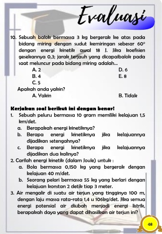 2. Carilah energi kinetik (dalam Joule) untuk :