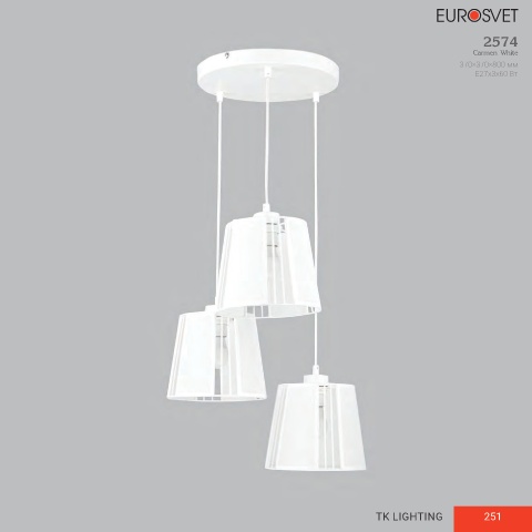 2573 2574 Carmen White Carmen White 390×390×550-900 мм 370×370×800 мм E27х1х60 Вт E27х3х60 Вт 250 TK LIGHTING TK LIGHTING 251