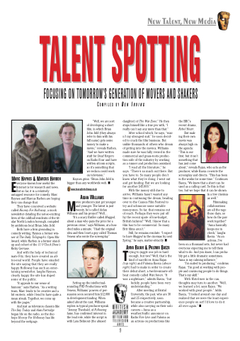 Setting up the intellectual- sounding PHD Productions with Veness, Williams’ powers of per- suasion soon secured him £12,000 in development funding. When asked about the cast, Williams replies in typical producer-speak: “Jeremy Theobald, of Following fame, has confirmed interest in the lead role, while the script is with Lara Belmont (the abused