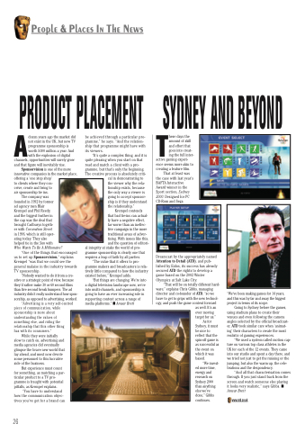 cal in demonstrating to the viewer why the rela- tionship exists, because the only way a viewer is going to accept sponsor- ship is if they understand the relationship.”