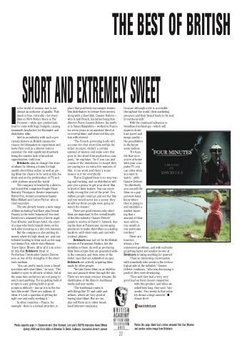 Britshorts aims to change this state of affairs by offering a forum for high quality short films online, as well as giv- ing them the chance to be seen in film fes- tivals and on the proliferation of TV and cable stations around the world.