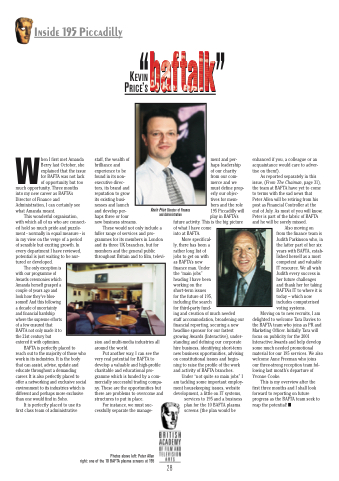 As reported separately in this issue, (From The Chaiman, page 31), the team at BAFTA have yet to come to terms with the sad news that Peter Allen will be retiring from his post as Financial Controller at the end of July. As most of you will know, Peter is part of the fabric of BAFTA and he will be sorely missed.