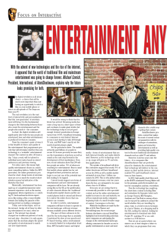 The real revolution is in the vast level of interactivity and personalisation that this ‘new generation’ of entertain- ment will bring. It is the fundamental change in the relationship between those who create the entertainment and the people who watch it – the consumer.