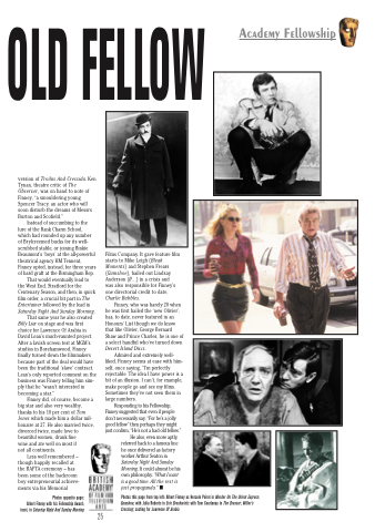 That same year he also created Billy Liar on stage and was first choice for Lawrence Of Arabia in David Lean’s much-vaunted project. After a lavish screen test at MGM’s studios in Borehamwood, Finney finally turned down the filmmakers because part of the deal would have been the traditional ‘slave’ contract. Lean’s only reported comment on the business was Finney telling him sim- ply that he “wasn’t interested in becoming a star.”