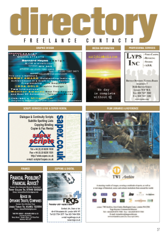 Tel + 44 (0) 20 8236 1600 Fax + 44 (0) 20 8236 1591 http:// www.sapex.co.uk e-mail: scripts@sapex.co.uk