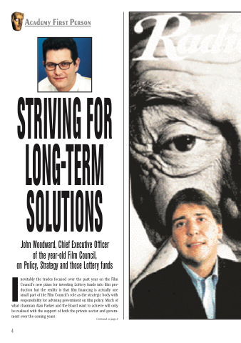 Inevitably the trades focused over the past year on the Film Council’s new plans for investing Lottery funds into film pro- duction but the reality is that film financing is actually one small part of the Film Council’s role as the strategic body with responsibility for advising government on film policy. Much of what chairman Alan Parker and the Board want to achieve will only be realised with the support of both the private sector and govern- ment over the coming years.