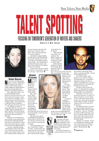 But chatting to fellow crew mem- bers has provided nothing but posi- tive feedback. “More and more people are using PC’s,” says Cox. “And with the advent of WAP technology, crews who are, perhaps, filming in the mid- dle of a field, will be able to find out what’s going on by emailing the site from their mobile.”