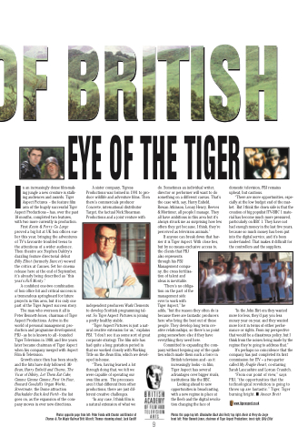 A sister company, Tigress Productions was formed in 1991 to pro- duce wildlife and adventure films. Then there’scommercialsproducer Concrete, international distributor Target, the factual Nick Shearman Productions and a joint venture with