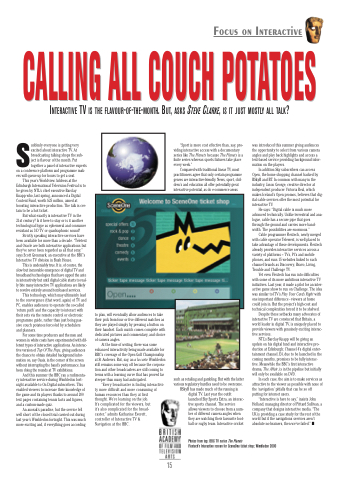 This is undeniably true. It is, of course, the slow but inexorable emergence of digital TV and broadband technologies that have upped the ante in interactivity but until digital cable starts to real- ly bite many interactive TV applications are likely to revolve entirely around text-based services.