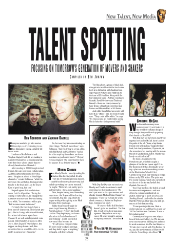 So, for now, they are concentrating on other things. “We both have ideas,” says Robinson. “And I’m trying to set up a film with Rik Mayall and Gail Porter.” And as for other aspiring filmmakers, are docu- mentaries a good career move? “Oh yes,” reckons Dagnell, “the opportunity’s there for anyone. It’s a definite way in.” ■