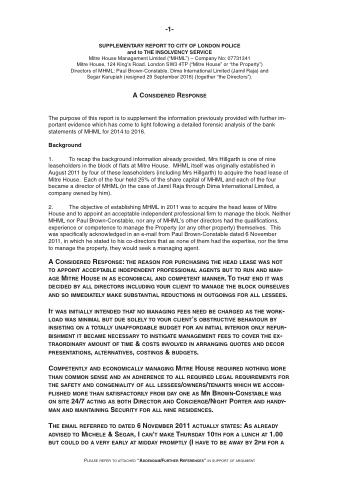 the purpose of this report is to supplement the information previously provided with further im- portant evidence which has come to light following a detailed forensic analysis of the bank statements of mhml for 2014 to 2016.