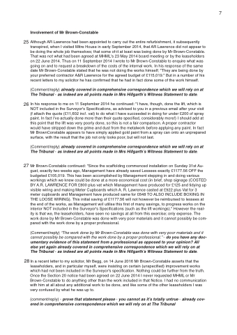 (Comment/reply) “The work done by Mr Brown-Constable was done with very poor materials and it cannot possibly be compared with the work done by a proper professional.” - do you have any doc- umentary evidence of this statement from a professional as opposed to your opinion? All else yet again already covered in comprehensive correspondence which we will rely on at The Tribunal - as indeed are all points made in Mrs Hillgarth’s Witness Statement to date.