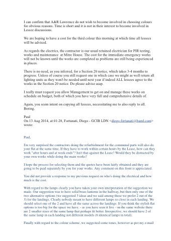There is no need, as you inferred, for a Section 20 notice, which takes 3-4 months to progress. Unless of course you still request one in which case we might as well return all lighting units as they won't be needed until next year if indeed ALL lessees agree to the works in the Section 20 notice. Do please advise asap.