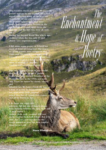 This booklet chronicles some 80 years of poems written by my mother, June, and myself reflecting many of the joys and vicissitudes of our own experiences and the world’s upheavals in that time.