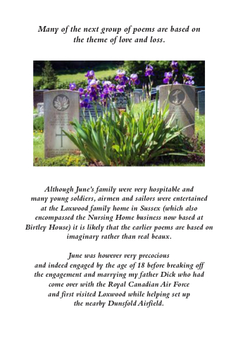 many young soldiers, airmen and sailors were entertained at the Loxwood family home in Sussex (which also encompassed the Nursing Home business now based at Birtley House) it is likely that the earlier poems are based on imaginary rather than real beaux.