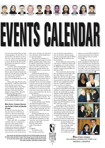 These events have also been help- ful in recruiting new and younger mem- bers which has gone some way to silence the critics who wrongly criticise BAFTA for being old and outdated. The young are keen to learn from, and mix with, the more established members who have a wealth of experience to pass on to those new members.