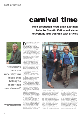 Eastman’s has proved impecca- ble judging by the range, scale and variety of Carnival’s output in television, film and theatre.