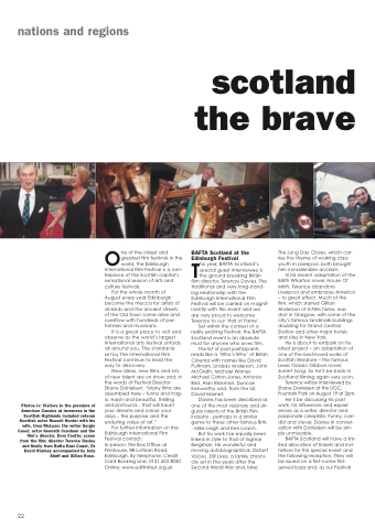This year, BAFTA Scotland’s special guest interviewee is the ground-breaking British film director, Terence Davies. The traditional and very long-stand- ing relationship with the Edinburgh International Film Festival will be carried on magnif- icently with this event and we are very proud to welcome Terence to our ‘Hall of Fame’.