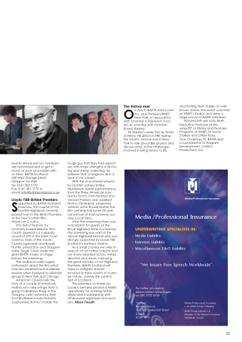 The premiere of American Cousins certainly proved a terrific opportunity for working further afield and in partnership with other event organisers and spon- sors. Alison Forsyth