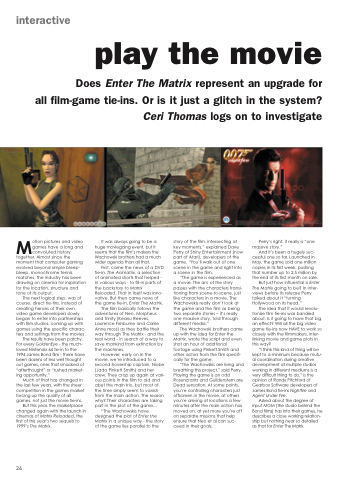 Does Enter The Matrix represent an upgrade for all film-game tie-ins. Or is it just a glitch in the system? Ceri Thomas logs on to investigate