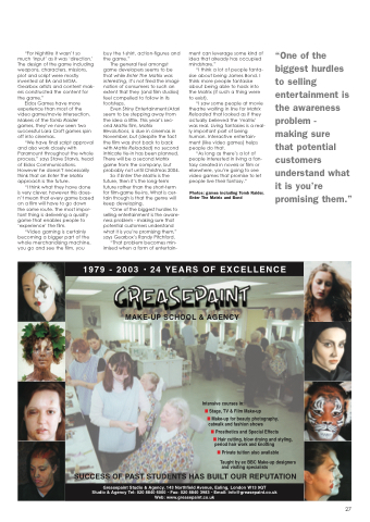“I think what they have done is very clever, however this does- n’t mean that every game based on a film will have to go down the same route. The most impor- tant thing is delivering a quality game that enables people to ‘experience’ the film.