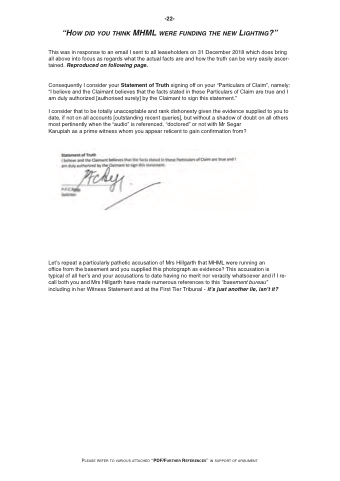 This was in response to an email I sent to all leaseholders on 31 December 2018 which does bring all above into focus as regards what the actual facts are and how the truth can be very easily ascer- tained. Reproduced on following page.