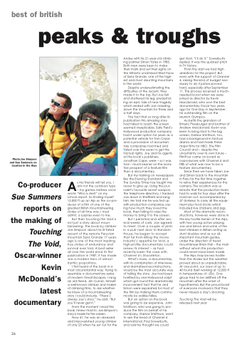 reports on the making of Touching The Void, Oscar-winner Kevin McDonald’s latest documentary