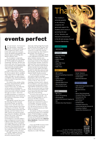 For more information please telephone Julie Chadwell, Director of Corporate Development BAFTA, 195 Piccadilly London W1J 9LN tel 020 7734 0022 email juliec@bafta.org