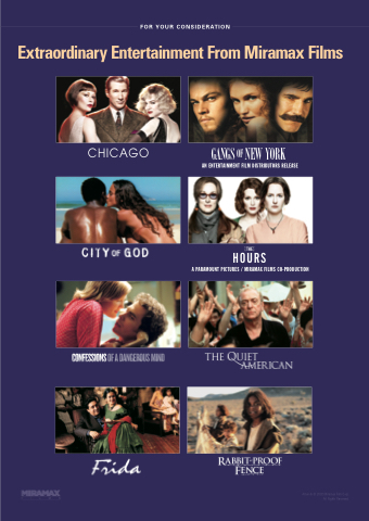 FOR YOUR CONSIDERATION Extraordinary Entertainment From Miramax Films CHICAGO GANGS OF NEW YORK AN ENTERTAINMENT FILM DISTRIBUTORS RELEASE A PARAMOUNT PICTURES / MIRAMAX FILMS CO-PRODUCTION Artwork © 2002 Miramax Film Corp. All Rights Reserved.