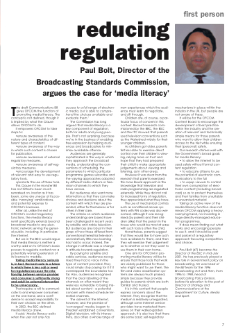 Paul Bolt, Director of the Broadcasting Standards Commission, argues the case for ‘media literacy’