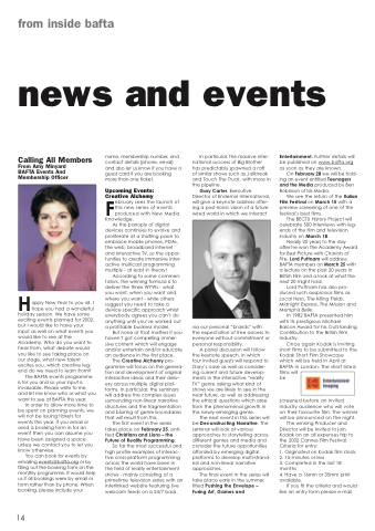 The BAFTA events programme is for you and so your input is invaluable. Please write to me and let me know who or what you want to see at BAFTA this year.