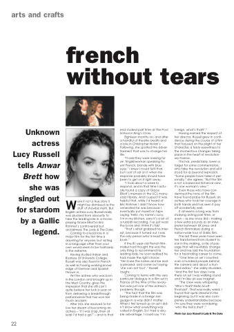 Eighteen months on, and after a handful of theatre credits and a role in Christopher Nolan’s Following, she spotted the adver- tisement that was to change her life.