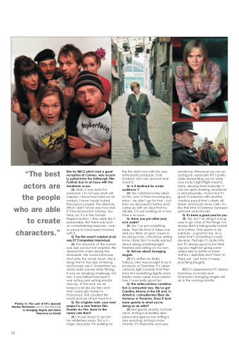 emotional. Whenever you do an acting job, especially if it’s partic- ularly demanding, you’re using your body’s fight/flight mecha- nisms, abusing them basically. It can be quite draining, emotional- ly and physically. I love it but it’s great to balance with another creative pursuit that’s utterly dif- ferent. And much more calm. It’s like that kind of balance between extrovert and introvert.