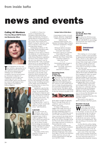 That is exactly what this event is about, and why you are invited to attend! This Kodak and BAFTA initia- tive is designed to allow an oppor- tunity to screen new work to a selected audience, and we hope that the choice of films will demon- strate the depth of new and emerging talent that is out there.