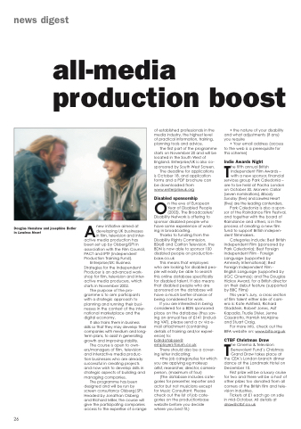 Thanks to funding from the Disability Rights Commission, BSkyB and Carlton Television, the BDN is now able to sponsor 100 disabled people on production- base.co.uk