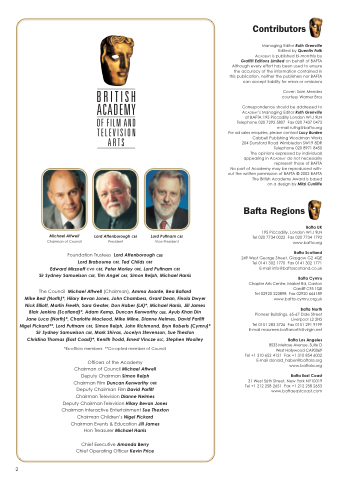 Managing Editor Ruth Grenville Edited by Quentin Falk ACADEMY is published bi-monthly by Graffiti Editions Limited on behalf of BAFTA Although every effort has been used to ensure the accuracy of the information contained in this publication, neither the publishers nor BAFTA can accept liability for errors or omissions
