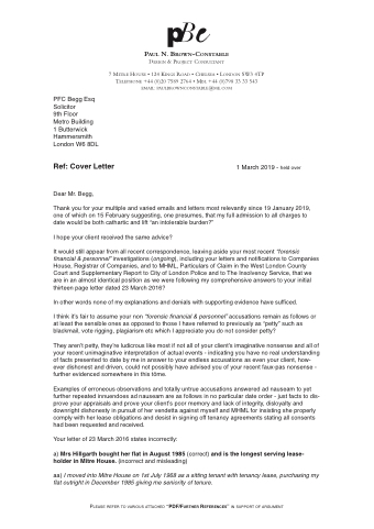 It would still appear from all recent correspondence, leaving aside your most recent “forensic financial & personnel” investigations (ongoing), including your letters and notifications to Companies House, Registrar of Companies, and to MHML, Particulars of Claim in the West London County Court and Supplementary Report to City of London Police and to The Insolvency Service, that we are in an almost identical position as we were following my comprehensive answers to your initial thirteen page letter dated 23 March 2016?